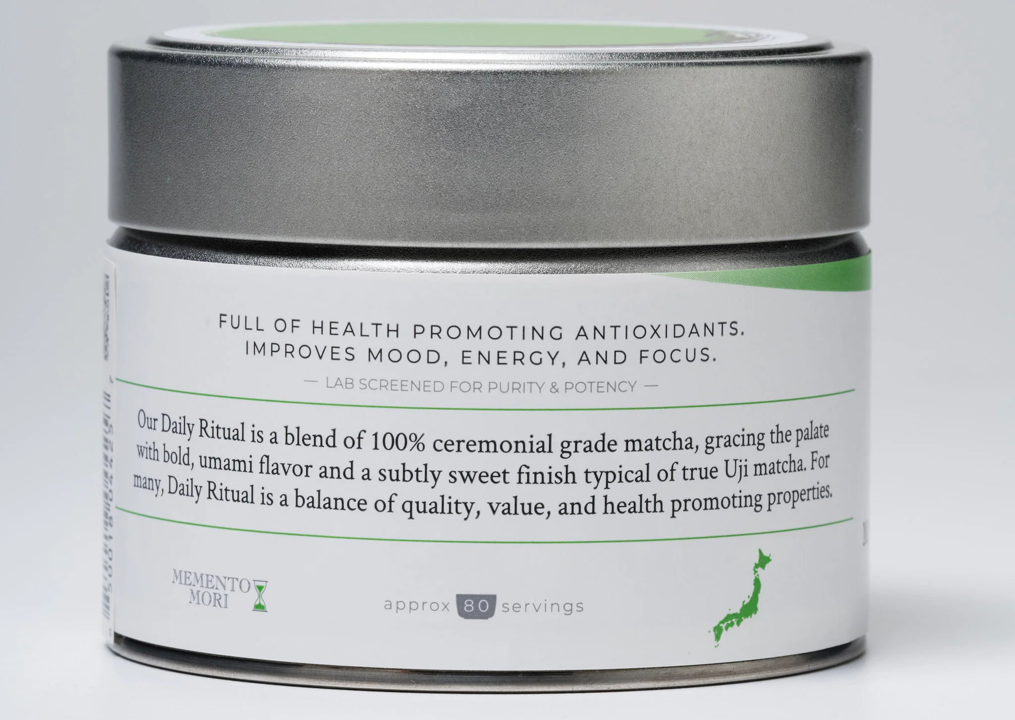 It has a crisp sweetness and a subtle grassiness. It is perfect to take out the front door in a hurry or prepare for a cherished friend. Our Daily Ritual blend is a premium drinking grade of matcha green tea.